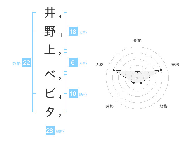 井野上 ベビタさんを姓名の画数から五運を鑑定