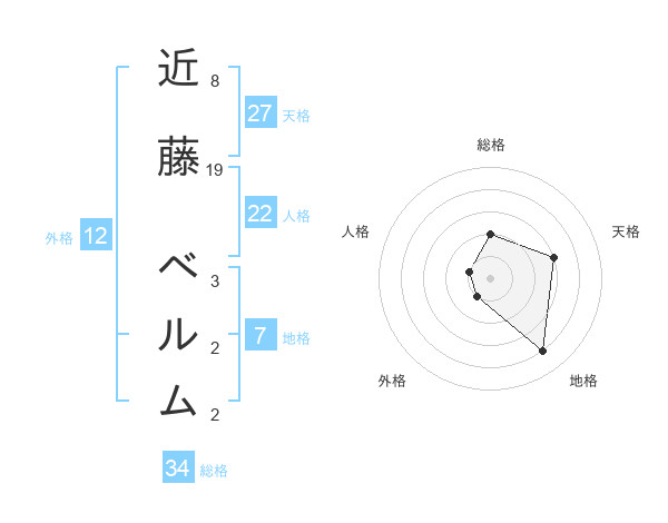 近藤 ベルムさんを姓名の画数から五運を鑑定