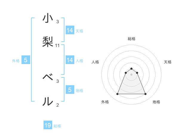 小梨 ベルさんの総格は19画の1点!