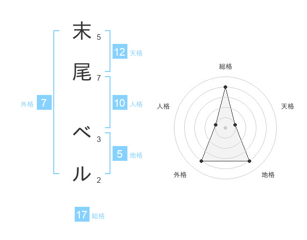 末尾 ベルさんの総格は17画の4点!