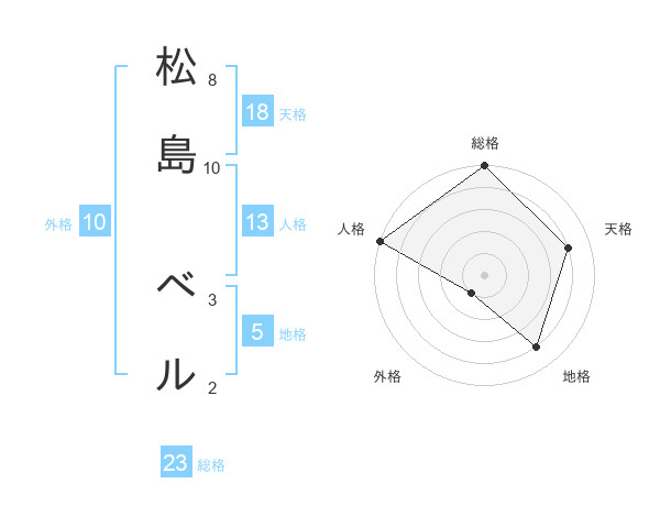 松島 ベルさんの総格は23画の5点!