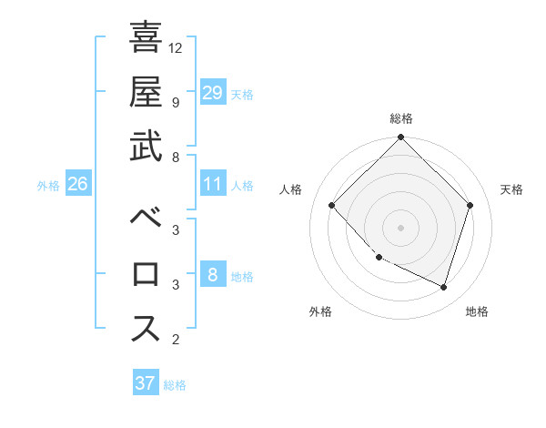 喜屋武 ベロスさんの天格は29画の4点!