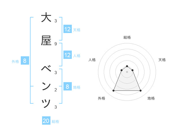 大屋 ベンツさんを姓名の画数から五運を鑑定
