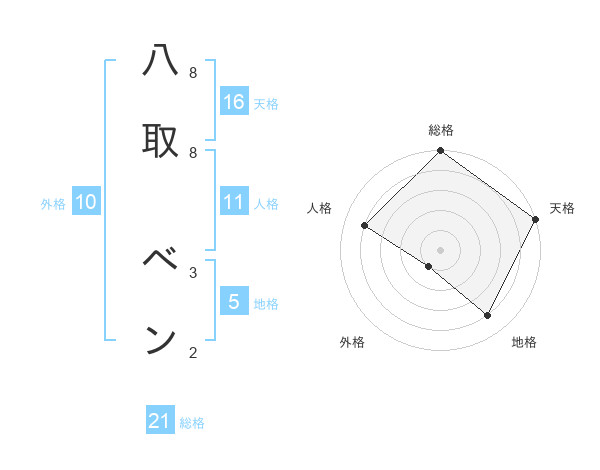 八取 ベンさんの総格は21画の5点!