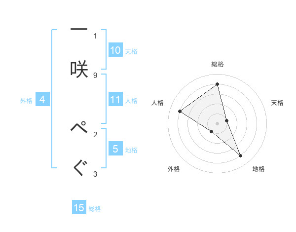 一咲 ペぐさんを姓名の画数から五運を鑑定