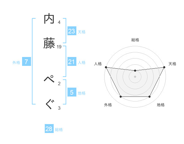 内藤 ペぐさんを姓名の画数から五運を鑑定