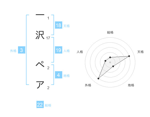 一沢 ペアさんを姓名の画数から五運を鑑定
