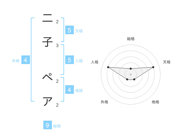 二子 ペアさんの総格は9画の1点!
