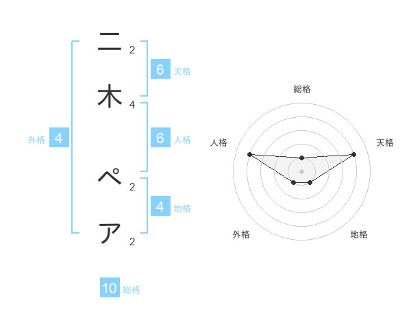 二木 ペアさんの天格は6画の4点!