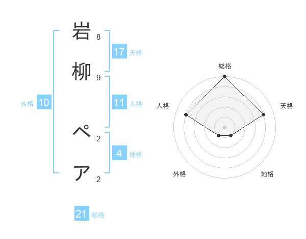 岩柳 ペアさんの総格は21画の5点!