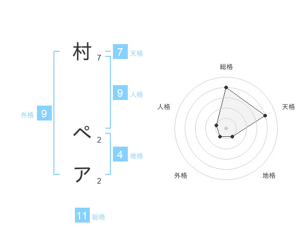 村 ペアさんの総格は11画の4点!