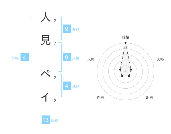 人見 ペイさんの総格は13画の5点!