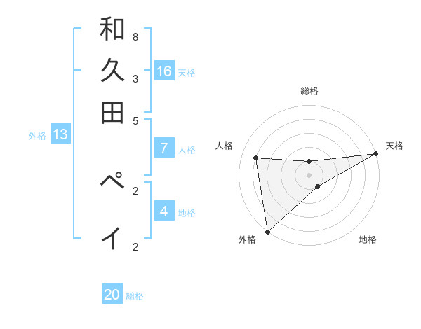 和久田 ペイさんの外格は13画の5点!