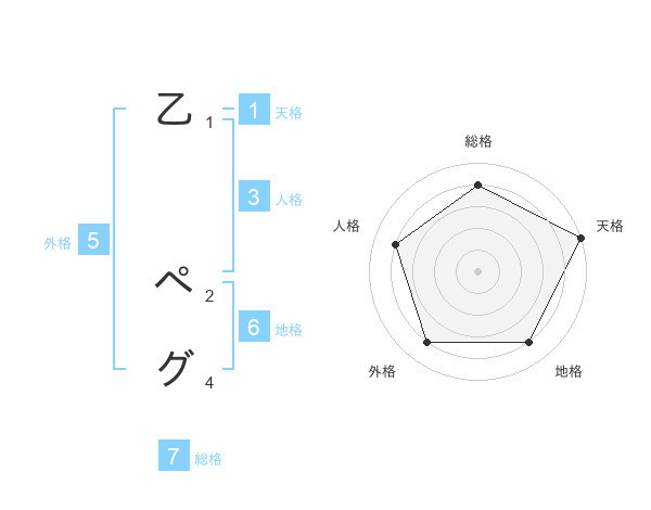 乙 ペグさんの総格は7画の4点!