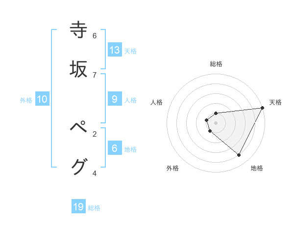 寺坂 ペグさんの天格は13画の5点!