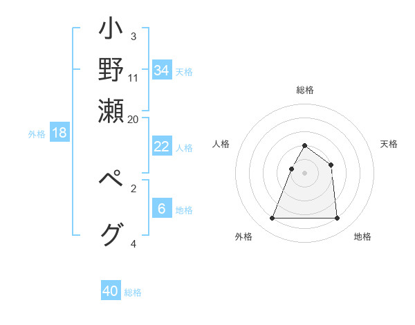 小野瀬 ペグさんを姓名の画数から五運を鑑定