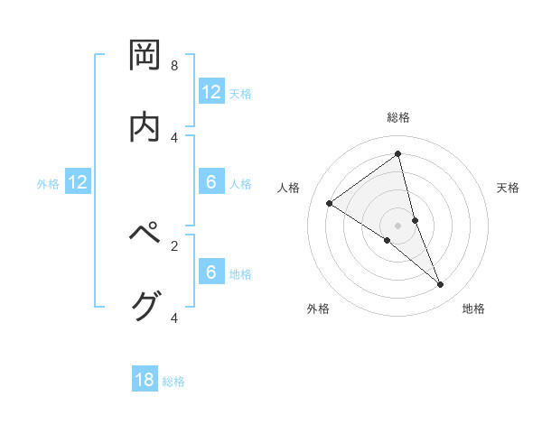 岡内 ペグさんの天格は12画の1点!