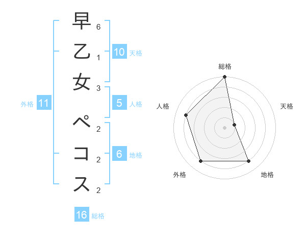 早乙女 ペコスさんを姓名の画数から五運を鑑定
