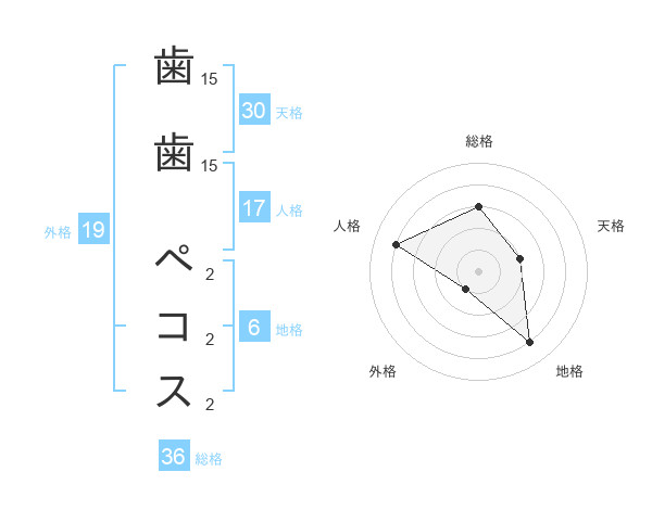 歯歯 ペコスさんの天格は30画の2点!