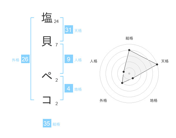 塩貝 ペコさんを姓名の画数から五運を鑑定