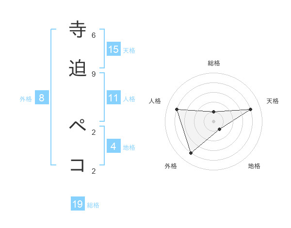 寺迫 ペコさんの天格は15画の4点!