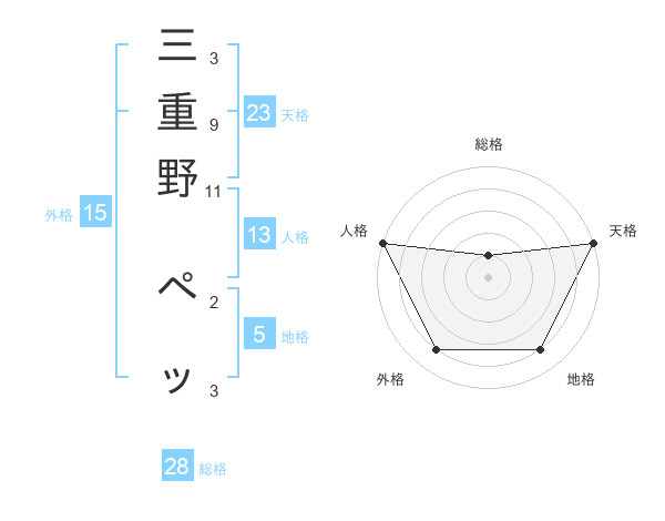 三重野 ペッさんを姓名の画数から五運を鑑定