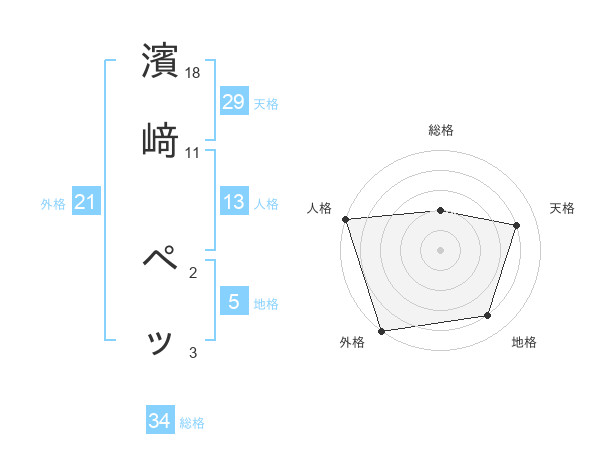 濱﨑 ペッさんの外格は21画の5点!