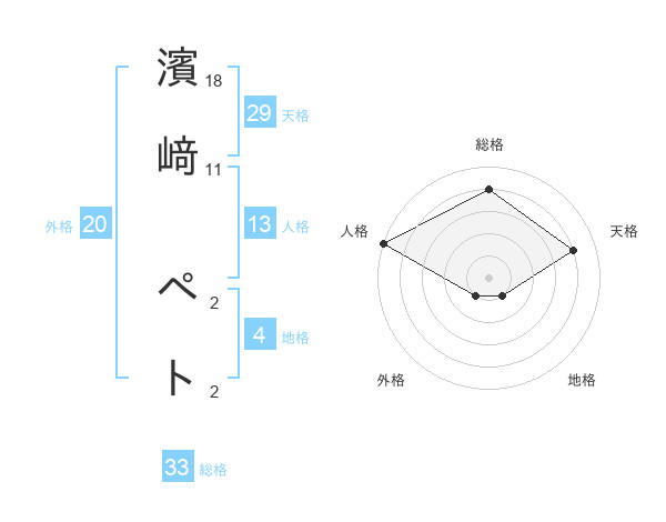 濱﨑 ペトさんを姓名の画数から五運を鑑定