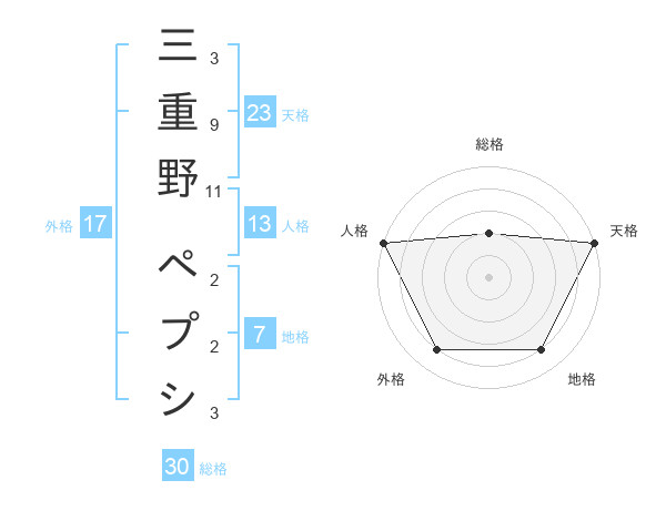 三重野 ペプシさんの総格は30画の2点!