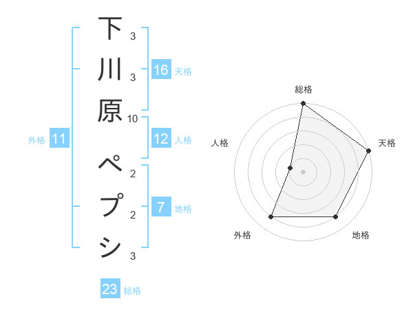 下川原 ペプシさんを姓名の画数から五運を鑑定