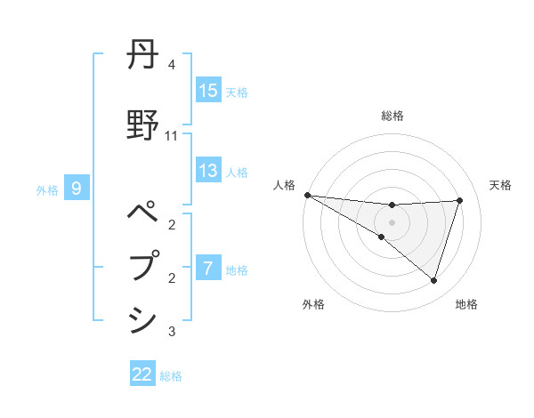 丹野 ペプシさんの総格は22画の1点!