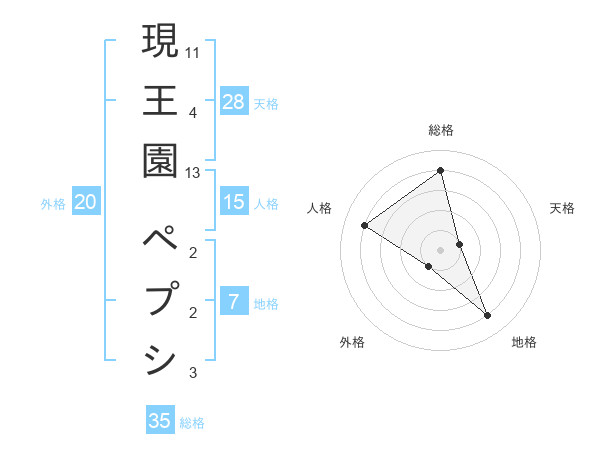 現王園 ペプシさんを姓名の画数から五運を鑑定
