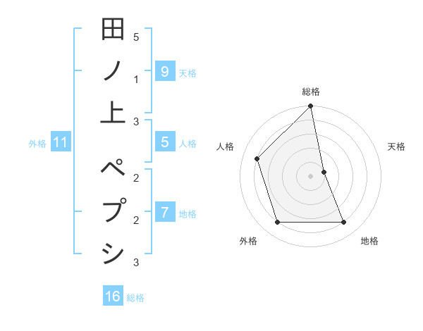 田ノ上 ペプシさんを姓名の画数から五運を鑑定