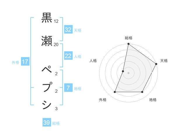 黒瀬 ペプシさんを姓名の画数から五運を鑑定