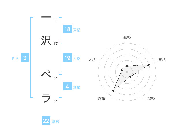 一沢 ペラさんを姓名の画数から五運を鑑定