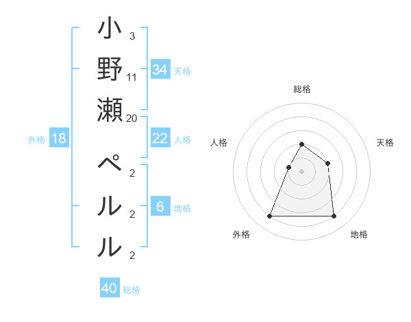 小野瀬 ペルルさんの総格は40画の2点!