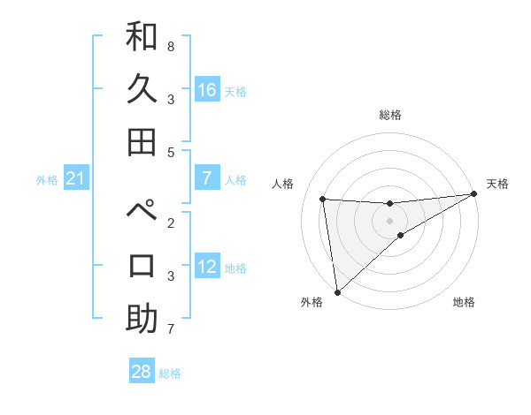 和久田 ペロ助さんを姓名の画数から五運を鑑定