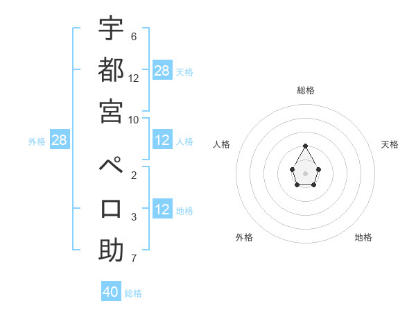 宇都宮 ペロ助さんを姓名の画数から五運を鑑定