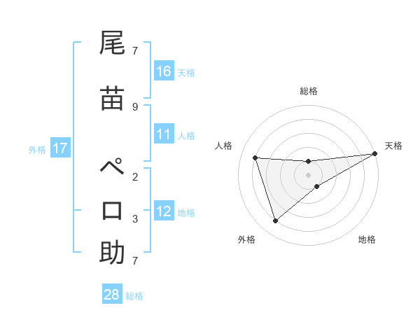尾苗 ペロ助さんを姓名の画数から五運を鑑定
