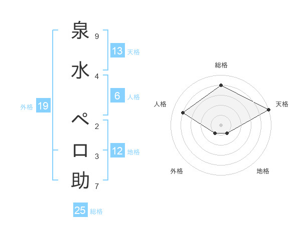 泉水 ペロ助さんの天格は13画の5点!