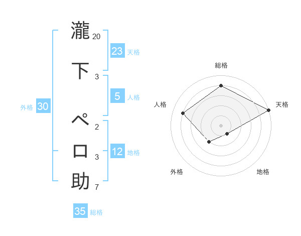 瀧下 ペロ助さんの天格は23画の5点!