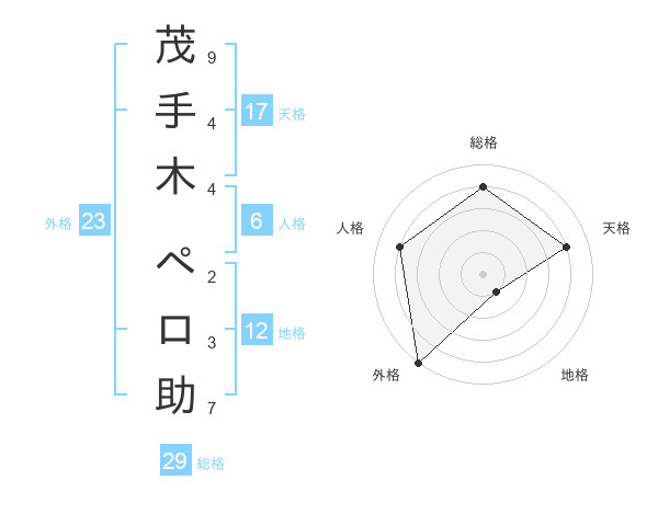 茂手木 ペロ助さんを姓名の画数から五運を鑑定