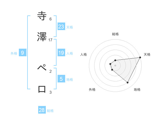 寺澤 ペロさんの天格は23画の5点!
