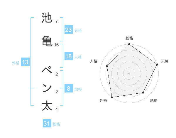 池亀 ペン太さんの総格は31画の5点!