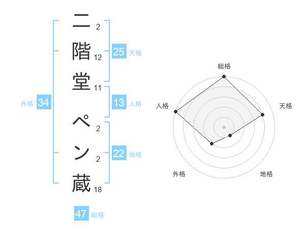 二階堂 ペン蔵さんの総格は47画の5点