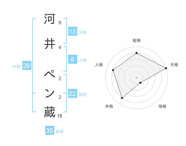 河井 ペン蔵さんを姓名の画数から五運を鑑定
