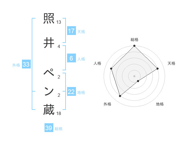 照井 ペン蔵さんを姓名の画数から五運を鑑定