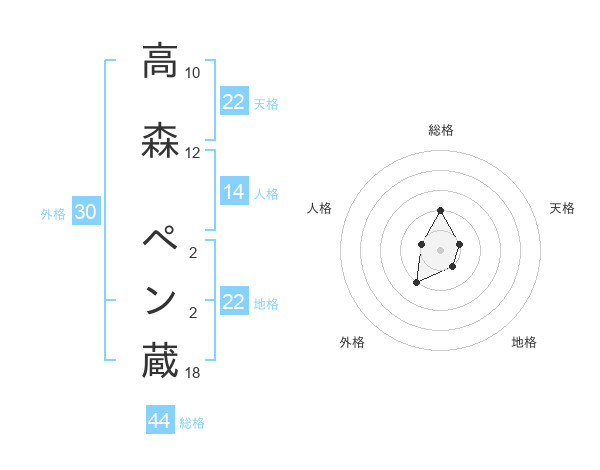 高森 ペン蔵さんを姓名の画数から五運を鑑定