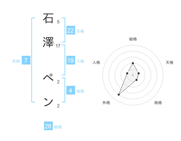 石澤 ペンさんを姓名の画数から五運を鑑定
