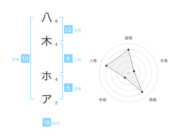 八木 ホアさんの総格は18画の4点!
